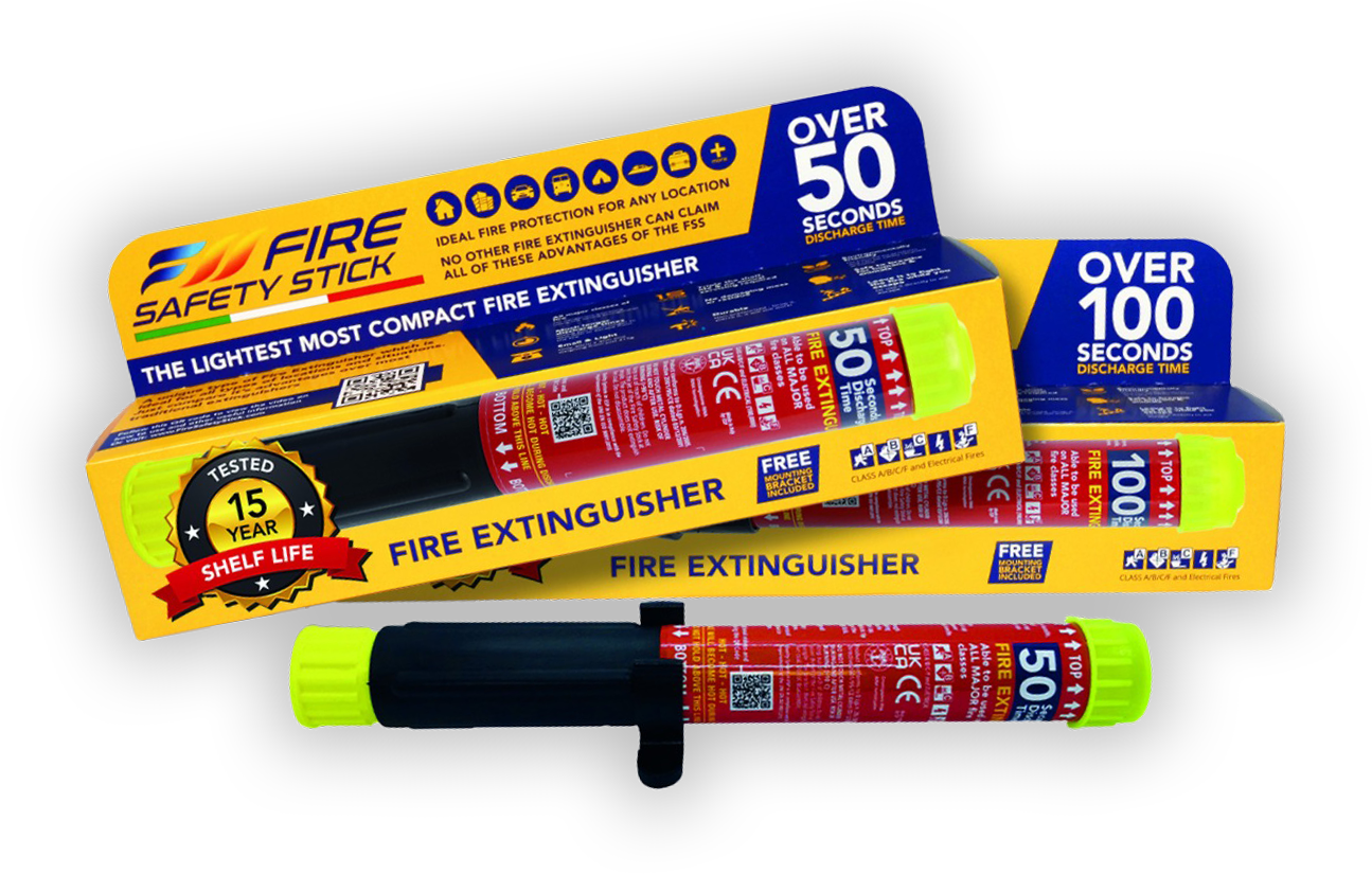 Lightweight, compact and lasts longer. A typical powder extinguisher weighs 3.5 kg and empties after 12 seconds whilst a small Fire Safety Stick lasts for 25 seconds and weighs just 170 grams